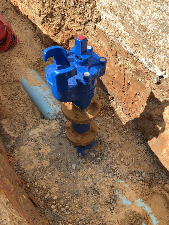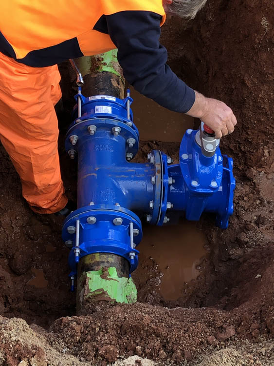 New branch connecting to an existing fire main with a sluice valve to isolate new branch at a school in Salisbury